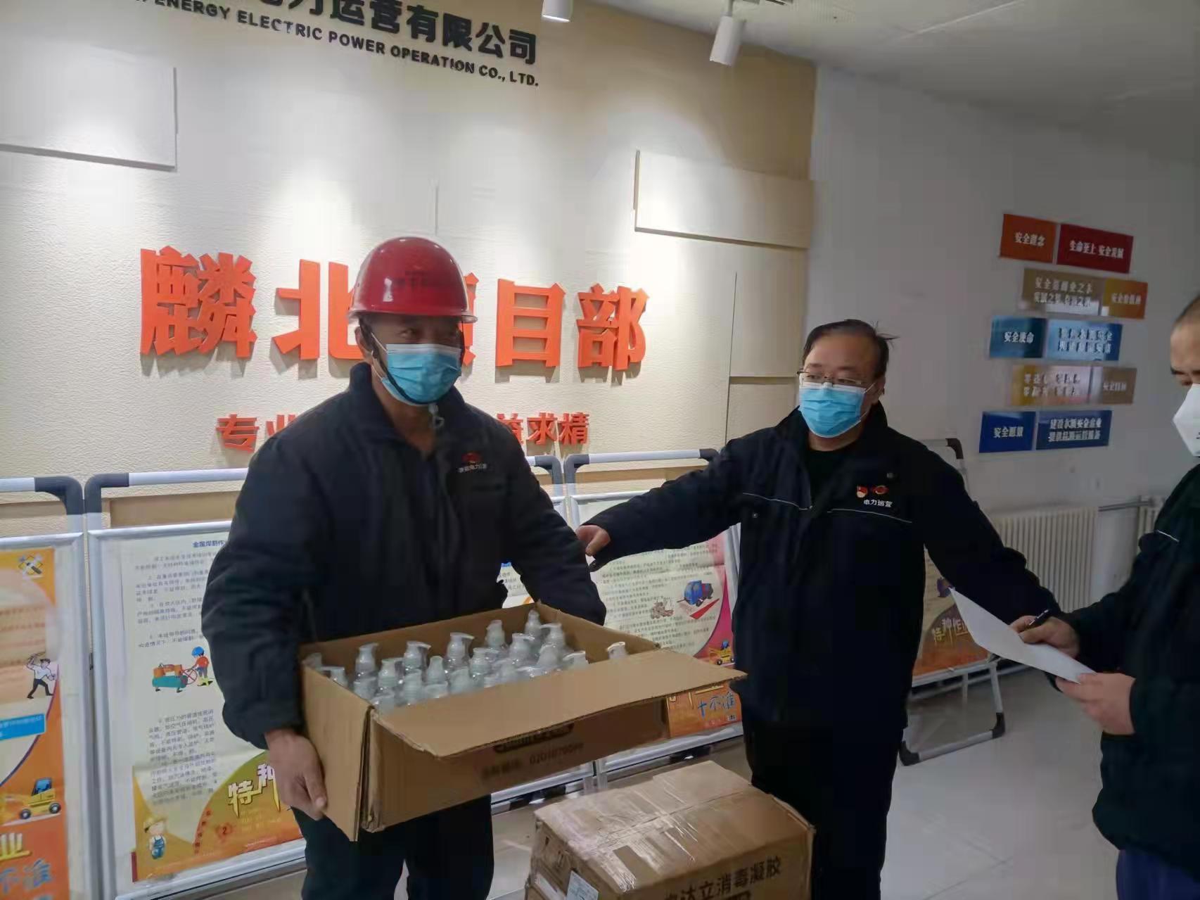 麟北項目部黨支部多處聯系搜集資源,購買到了消毒洗手液及方便面等物資,慰問堅守在疫情防控、供熱保電的一線班組員工。
