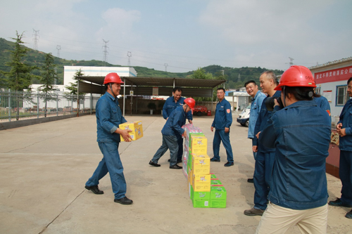 一份清涼,一份關懷。近日,商洛發電總工程師孫明、副總經理湯培英到公司商洛項目部慰問高溫下堅守生產一線的全體職工,對大家“戰高溫、斗酷暑、保安全、促生產”的奉獻精神給予高度贊揚,將防暑降溫飲品送到職工們手中,叮囑大家要注意防暑、保障自身安全健康,確保高溫季節安全生產工作平穩有序開展。